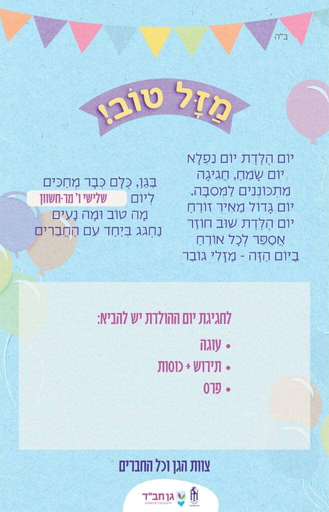 זהו זמן יחודי בו את כגננת מקדישה לכל אחד מילדי הגן לקראת יום ההולדת.