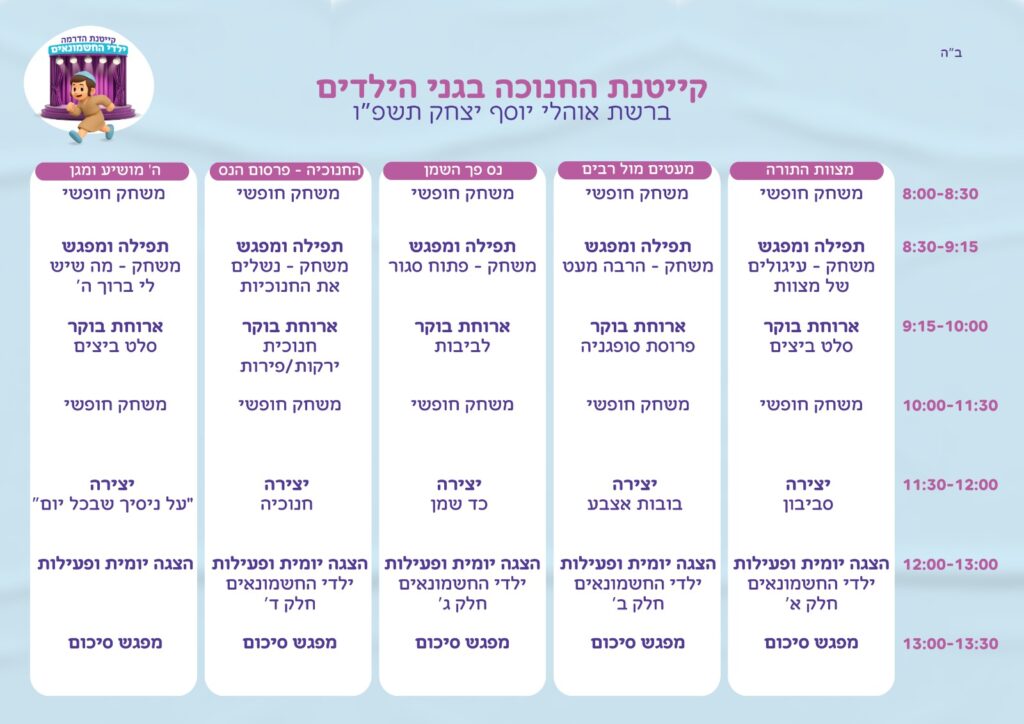 תוכנייה קייטנת חנוכה
