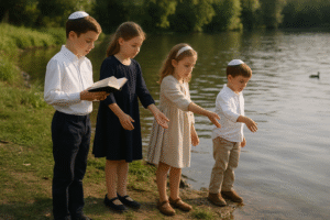 "מה שנוהגין לילך בר"ה אחר סעודה אצל ימים ונהרות להשליך במצולות ים כל חטאתינו, משום דאיתא במדרש זכר לעקידת יצחק, שעבר אברהם אבינו בנהר עד צווארו ואמר הושיעה ה' כי באו מים עד נפש. והוא השטן שנעשה כמו נהר לעכב אותו מן העקידה" (מהרי"ל הלכות ר"ה)